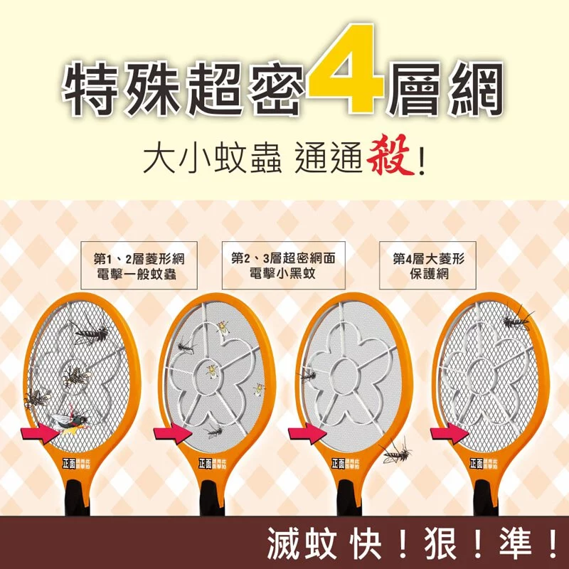 ✔拍面由四層不同尺寸的菱形網孔排列而成,撲殺小黑蚊、大小蚊蟲不漏抓,效果絕佳